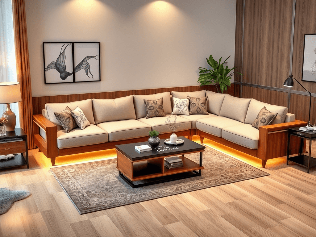 अपने Living Room के हिसाब से Sofa Set चुनें। Small Room के लिए Compact Sofa और Large Room के लिए L-Shaped या Corner Sofa सबसे अच्छे हैं। - Material & Comfort: